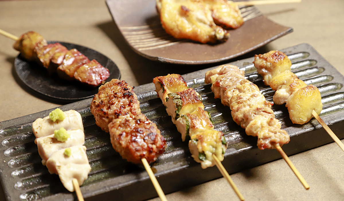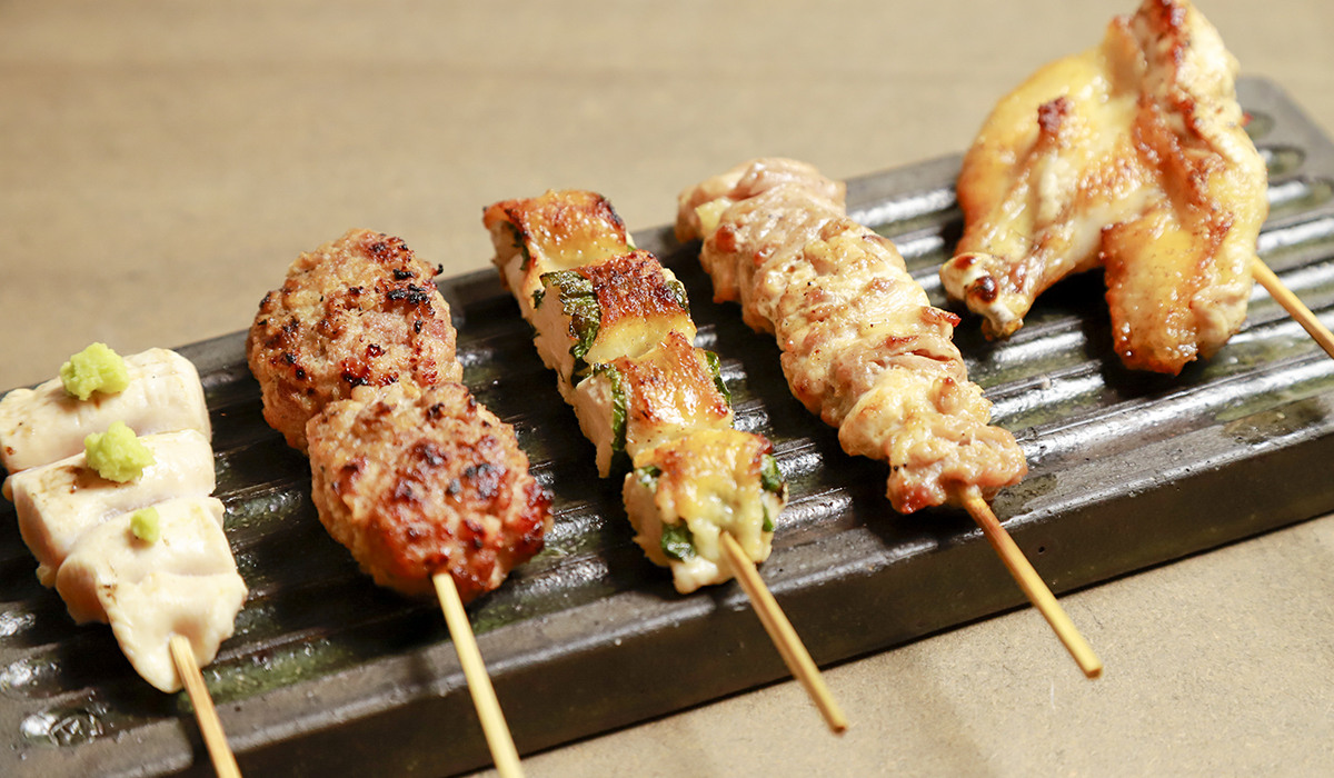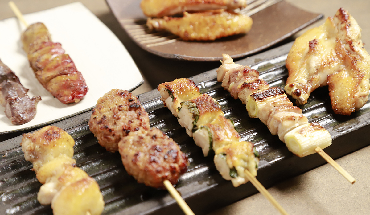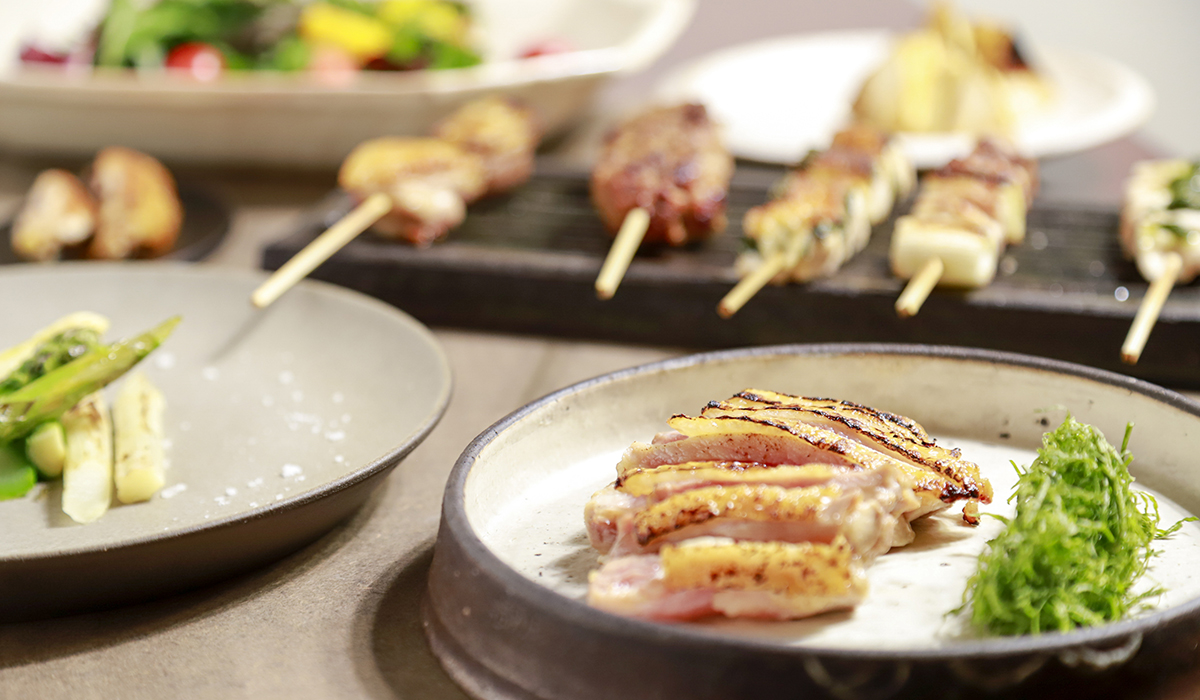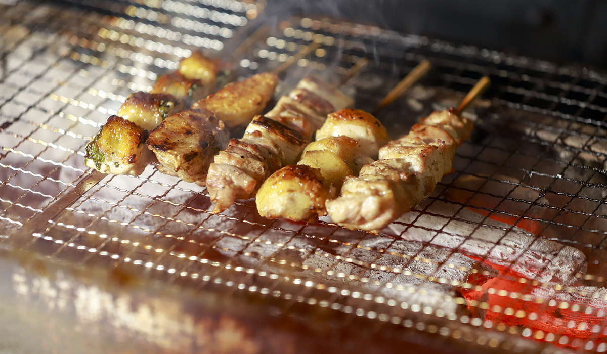 その日の朝に届いた熊野地鶏を店内でさばき、仕込みを行います。ひと串、ひと串を炭火を使ってシンプルにそれぞれの部位の美味しさを引き出すことを心がけて丁寧に焼いています。まずはおまかせからお好みでどうぞ。