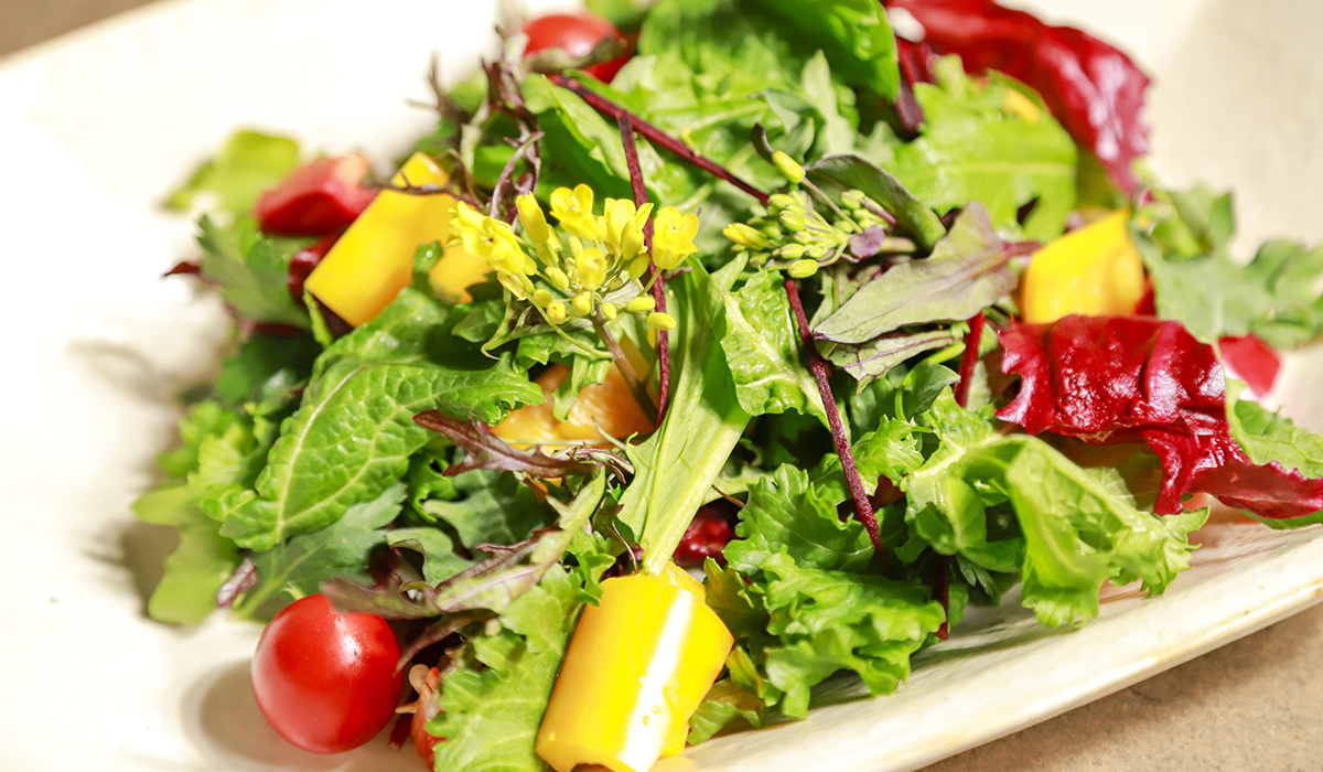 四季折々の旬を楽しむことができる野菜は炭火で、いろいろな調理で、 そのおいしさを引き出します。 季節の移ろいとともに味わえる本日の野菜メニューをお楽しみください。